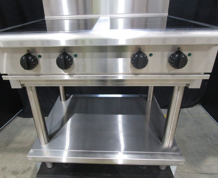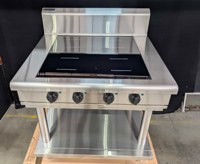 Brand:WaldorfModel:AUIN8400F-LSerial Number:2340652-Z1Dimensions:W: 900mmD: 805mmH: 1130mmProduct Description4 cooking zone electric induction cooktop on leg stand. 4 x 5kW full area induction zone with 4 x 270mm dia. square induction zone 6mm thick ceramic glass cooking surface and automatic pan detection switches induction zone off when pan removed.Condition of EquipmentGreat overall condition. Fully repaired and tested. Scratches across body and a few marks on cooking surface. No other damage or protective plastics. It has been checked, cleaned and tested.Stock Availability:In StockRRP:$29,384.00Special Price:$19,589.00 +GST -